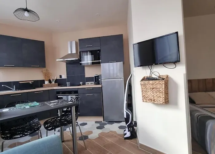 Eine Küche mit einer Mikrowelle, einem Wasserkocher und einem Kühlschrank ermöglicht es Ihnen, Ihre eigenen Mahlzeiten in diesem Apartment zuzubereiten. Für einen bequemen und entspannenden Aufenthalt in dieser Unterkunft stehen den Gästen Ausstattung zur Kaffee- & Teezubereitung zur Verfügung. Einen 5-minütigen Spaziergang vom Apartment entfernt werden mediterrane Speisen im Restaurant Chez Wilfrid et Isa aufgetischt. Das Apartment ist gleich neben der Bushaltestelle Avenue de l'Europe.